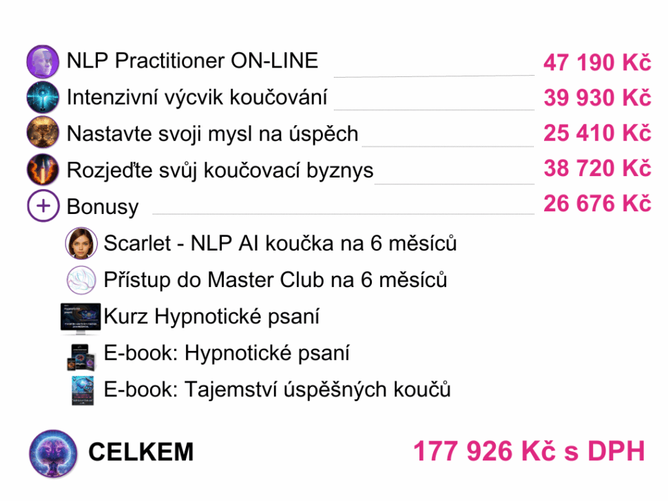 Vybaví vás všemi potřebnými ZNALOSTMI a DOVEDNOSTMI pro práci NLP KOUČE.